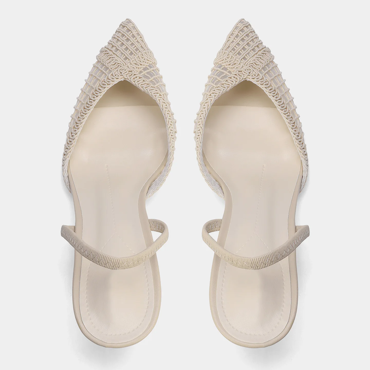 ZA2026 Summer New Women's Light Beige Woven Open Back Pointed Toe High Heels Hollow Mules Sandals Outdoor High Top Style